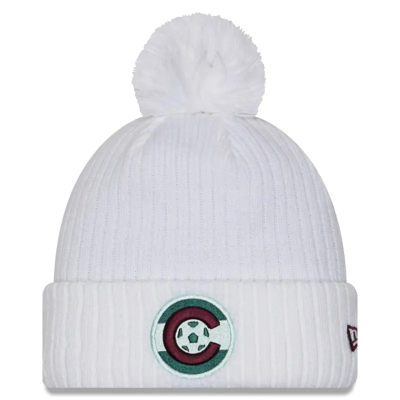 Men’s Colorado Rapids New Era White 2025 Jersey Hook Cuffed Knit Hat with Pom