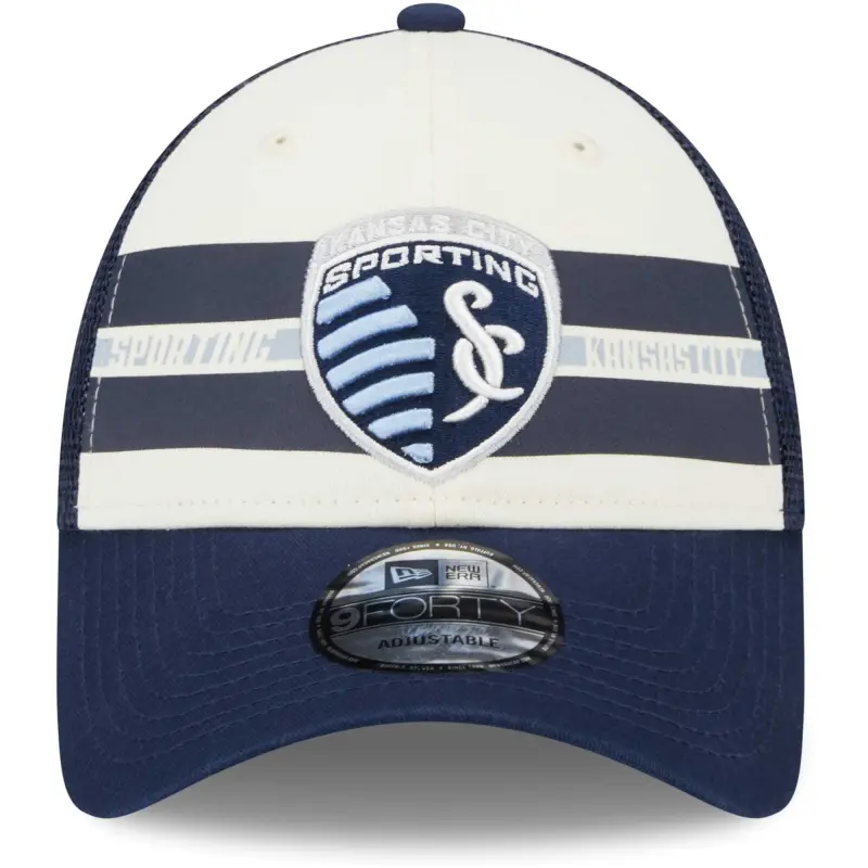 Men’s Sporting Kansas City New Era White/Navy Team Stripes 9FORTY Trucker Snapback Hat