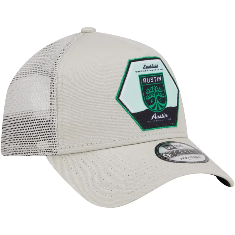 Men’s Austin FC New Era Cream Established Patch 9FORTY A-Frame Trucker Adjustable Hat