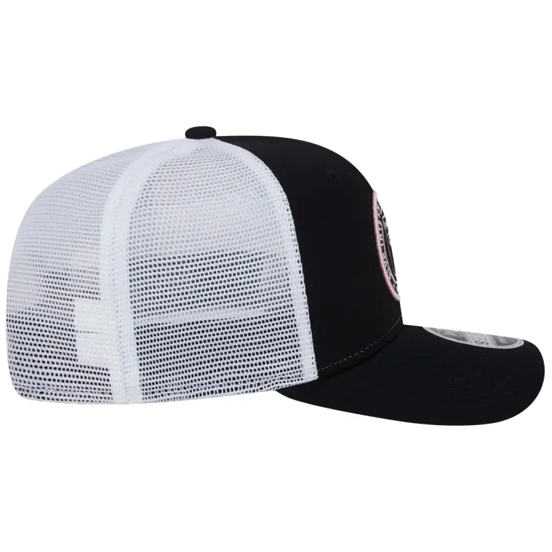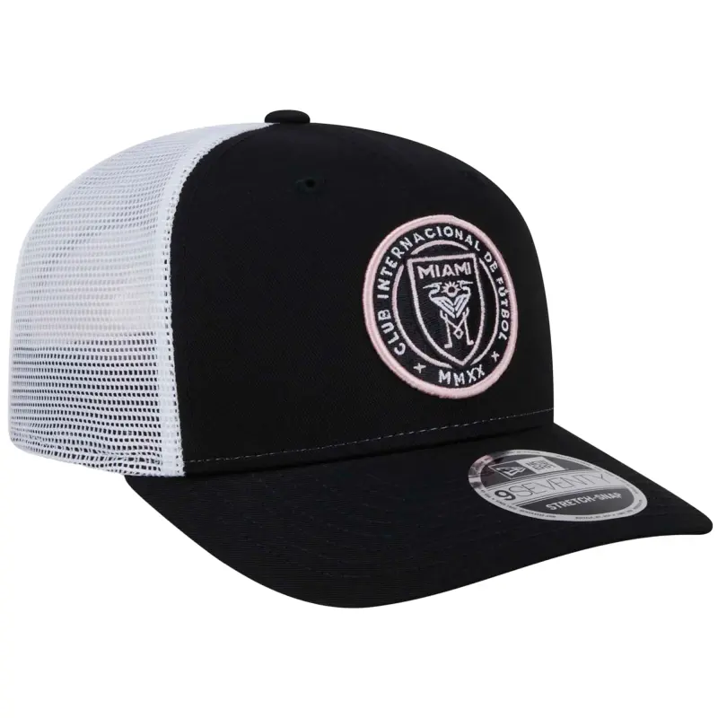 • Complete your Inter Miami CF look with this New Era 9SEVENTY COOLERA Trucker Stretch-Snap Adjustable Hat. The structured crown and curved visor provide a modern and stylish look, while the COOLERA® technology wicks away sweat to keep you cool and dry. With its four perforated mid and rear panels, this hat offers excellent breathability, ensuring you stay comfortable even on the hottest Inter Miami CF match days.