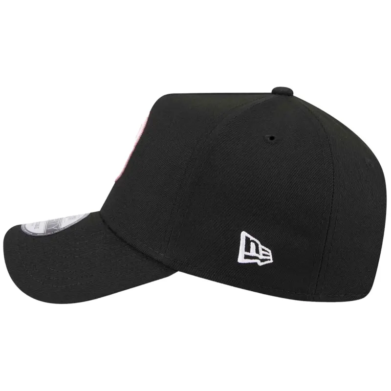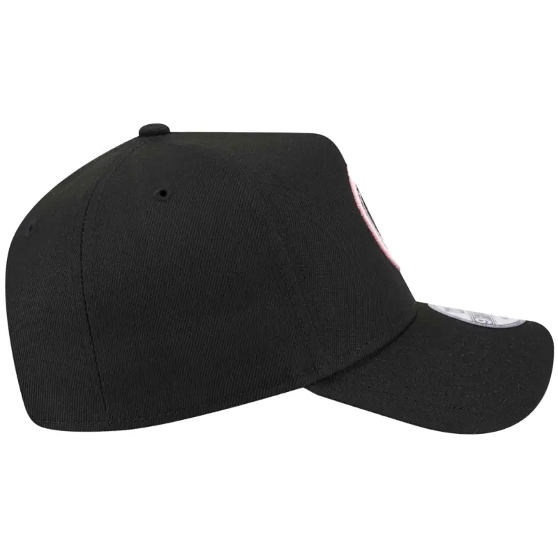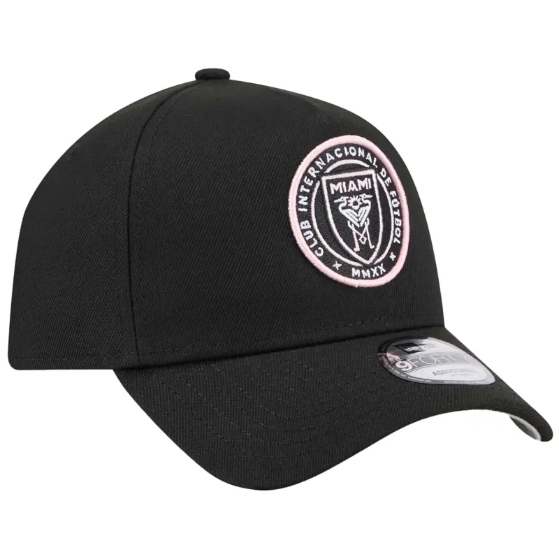 • Show your Inter Miami CF stripes with this New Era A-Frame 9FORTY Adjustable Hat. This Inter Miami CF A-Frame 9FORTY hat features a classic six-panel design with embroidered club graphics, making it a must-have for any supporter. The structured fit and slightly curved bill provide a comfortable and stylish look, while the snap closure ensures a secure and adjustable fit.