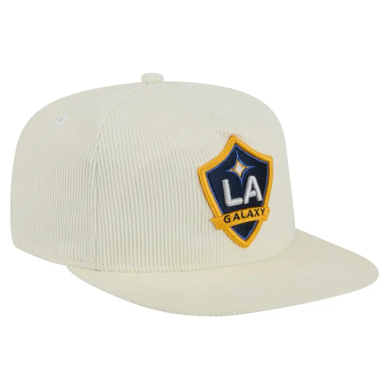 Men’s LA Galaxy New Era Cream 2025 Kickoff Snapback Golfer Hat