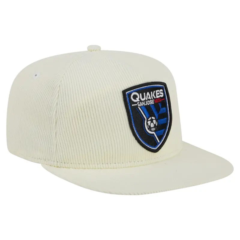 • Hit the links in style with this San Jose Earthquakes 2025 Kickoff Snapback Golfer Hat from New Era. This San Jose Earthquakes hat features a unique five-panel construction with a pinched A-frame design on the front for a modern take on a classic look. The corduroy fabric adds a vintage feel, while the embroidered San Jose Earthquakes logo on the front and MLS shield on the back proudly display your team pride.